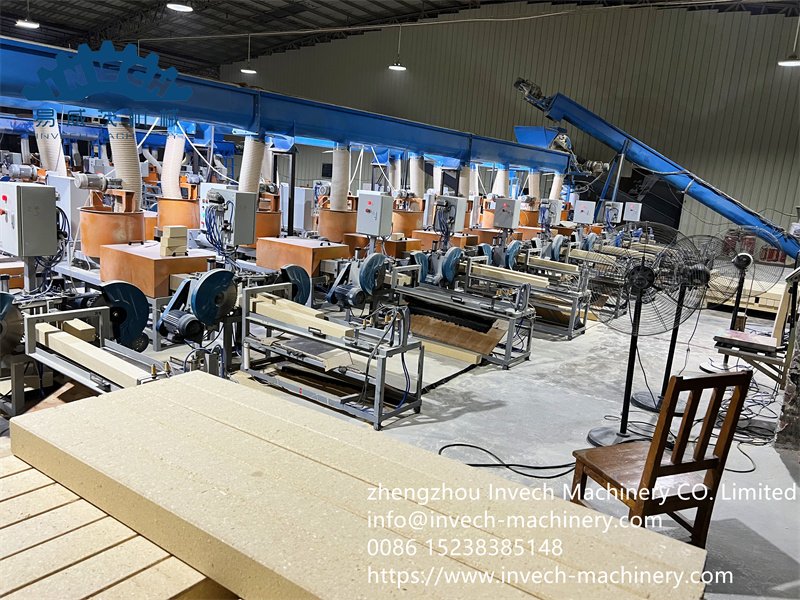 Full Automatic Compressed Chips Pallet Block Line here is including automatic glue sawdust mixing machine,automatic feeding coveyor and automatic feeding system and auto blocks pressing and cutting machine.